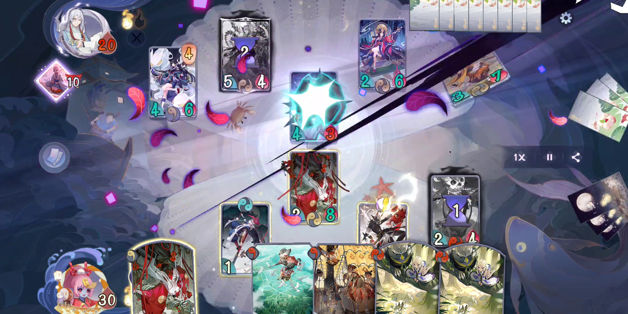 用的mumu模拟器,打的排位,很明显画面都错乱了,式神无法出击,只能打法术牌