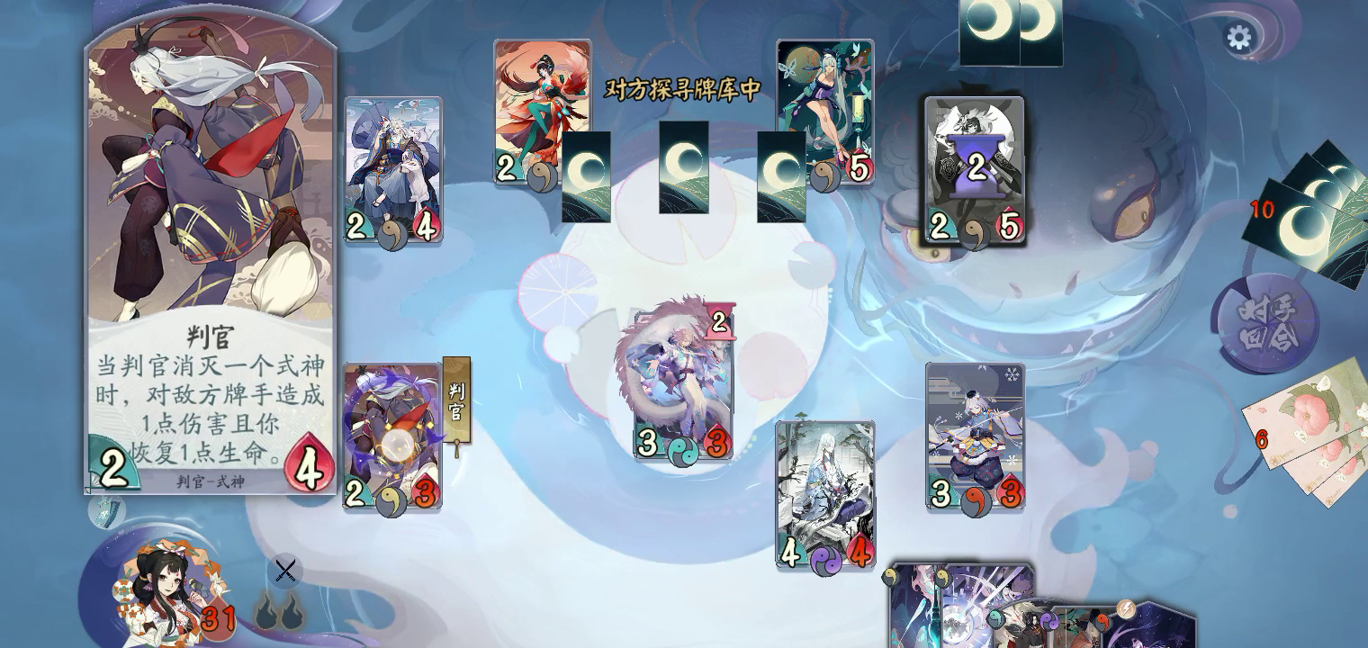 对面人机的书生,用了一张攻击式神的法术,因为我方式神都死了,所以他打了己方的妖琴师。