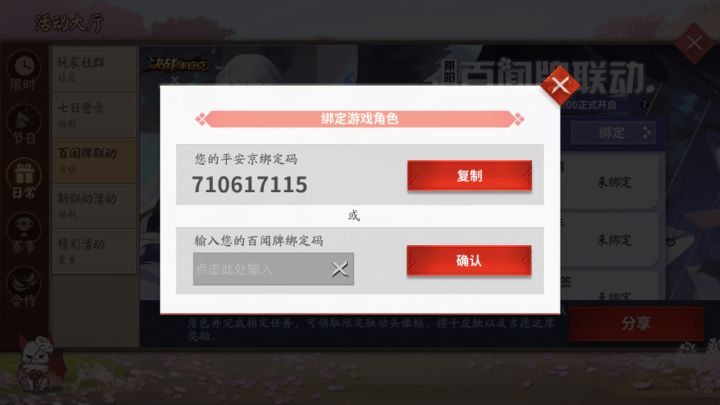 有要绑阴阳师联动的嘛 我的联动码