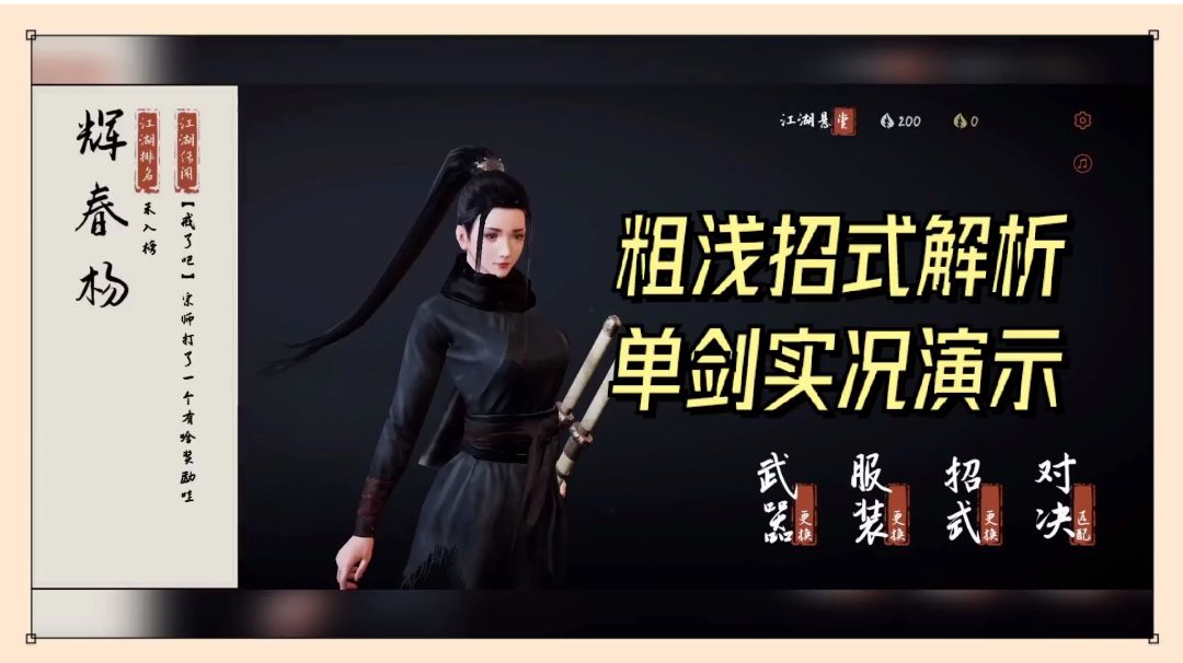 弈剑行:粗浅招式解析,单剑实况演示!【辉春杨】