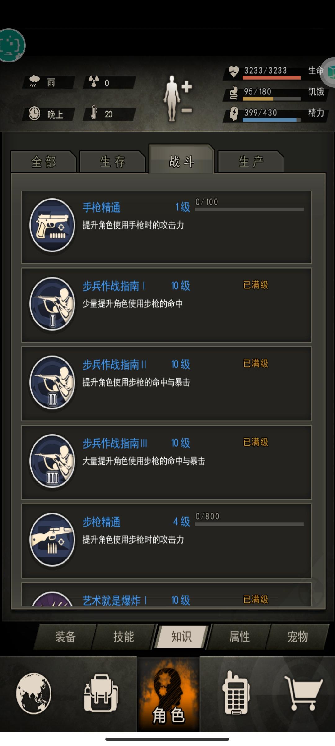 刀,优点:这个都需要,刷材料日常的用缺点:健身需要睡很久器材,慢慢熬(主刀的血量后期也得多熬,后期熬血也很难)弓,优点:这个前期成型快,技巧好练习,85完美暴击高缺点:距离4格子,想搞好必须完美,盖子消耗太多手,优点:手盾,过图最容易的,爆发高缺点:技巧难练习,时间长步,优点:攻击距离6格子,攻击最高缺点:技巧难练习,时间长,这个比手难熬的原因,就是需要硬木(每天只有8个,每