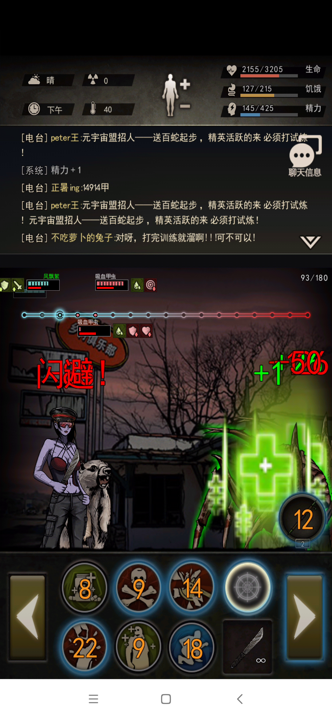 没啥技术含量,就是嘶吼的时候接一个突进就好了,还有体力恢复换成快速闪避(手动放,快到怪的时候换成自动)900血65攻击自强。1100血就比较稳了。自强要有医生带高防止翻车。