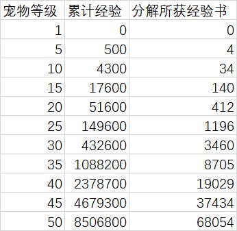 宠物经验对照表 我有点后悔搞了……前面是太长不看版,最后一个是完整表格。