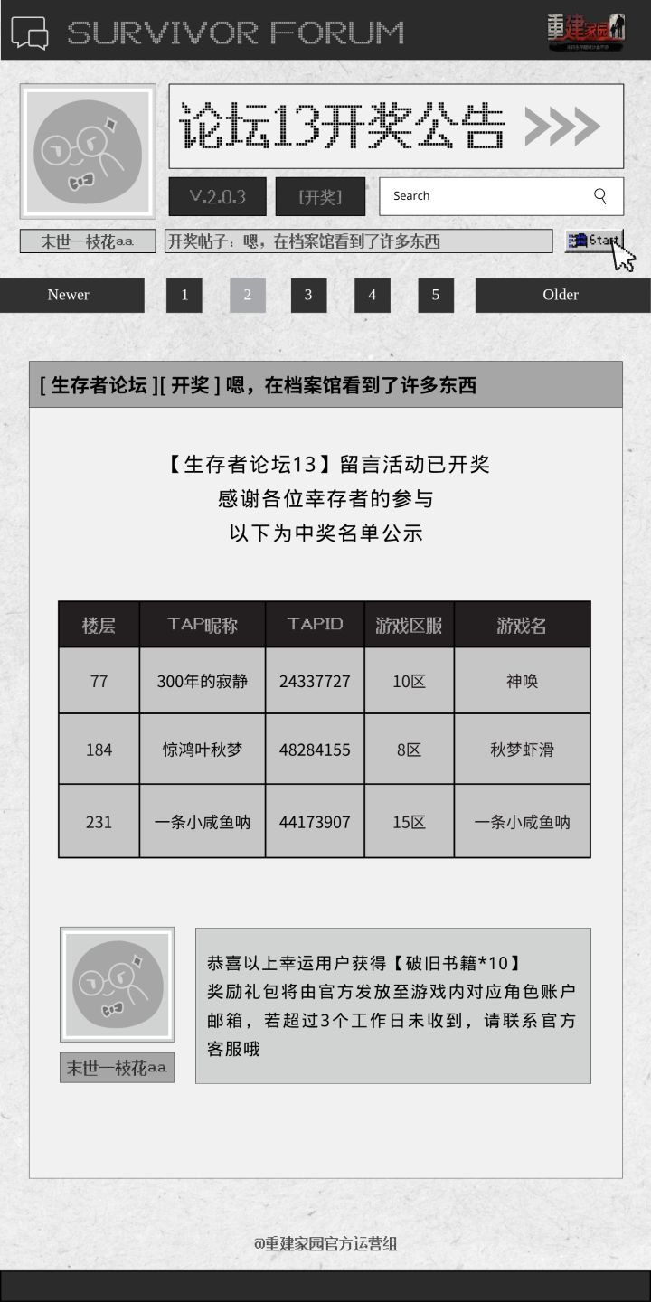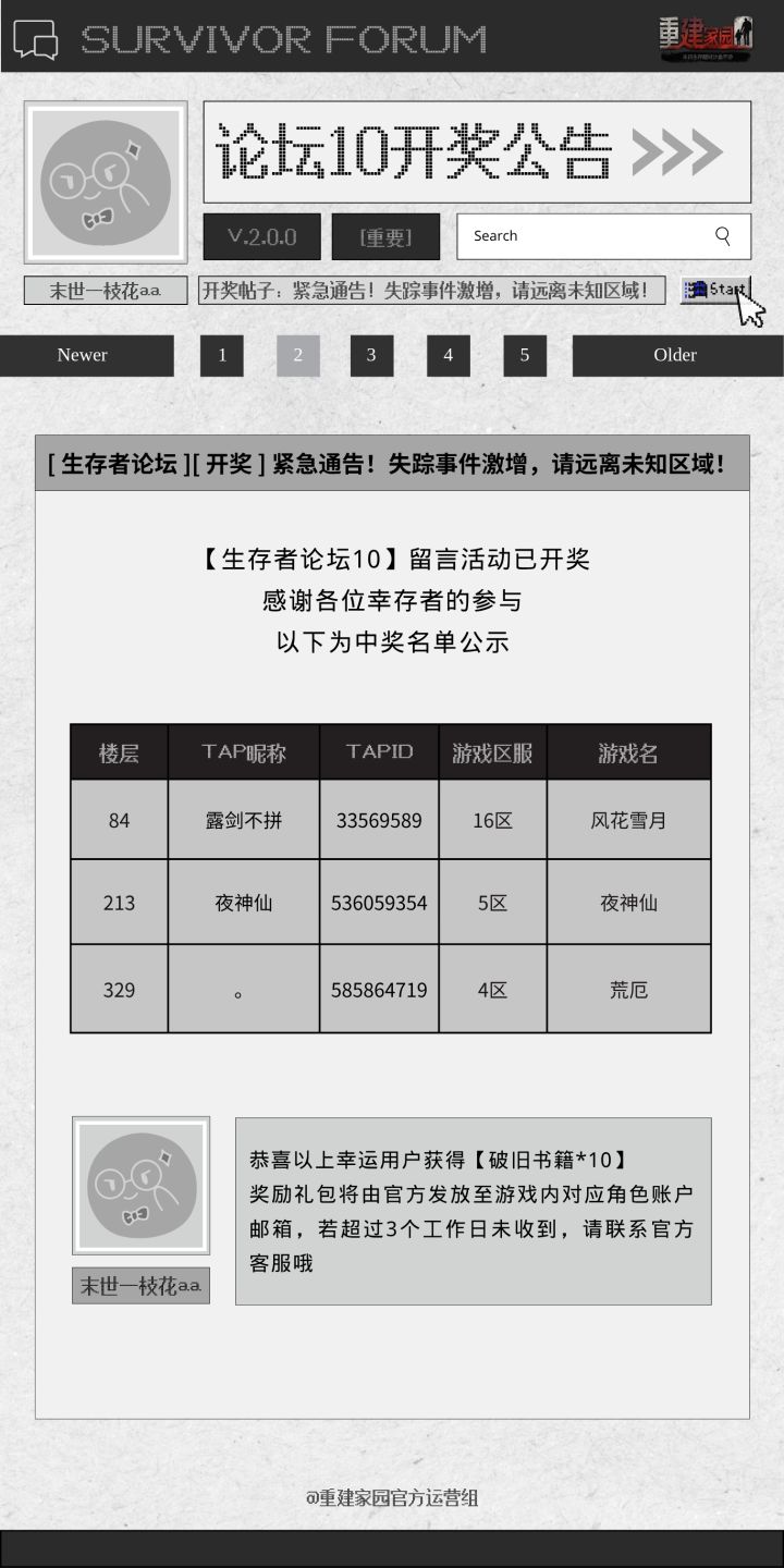 【开奖公告】生存者论坛 10 | 请远离未知区域!