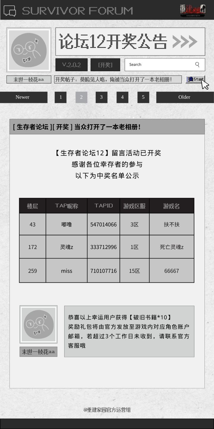 【开奖公告】生存者论坛 12 | 打开了一本老相册