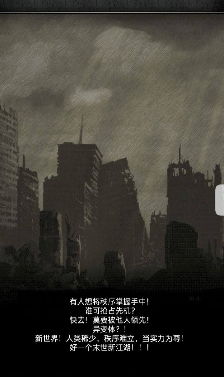 核爆后数些岁月,熠熠红日追寻旧路,攀至高空,散去压顶黑云,逼退末日寒潮,幸存者终于能重返地表。遥望天地间,不知多少楼阁蒙尘,不知多少旧业待兴……话说灰白相映间,又是几年过去,幸存之人姑且算是在这末世打下一片净土,如今也是人来人往,与当年盛世,也算有几分相似。只是总有异种不知在何处滋生,每逢夜晚,街上林间,总有蹒跚身影,杀之不尽。避难营地近日多了个小痴儿,说是曹宇在外捡来的,浑身是伤,也不知是磕