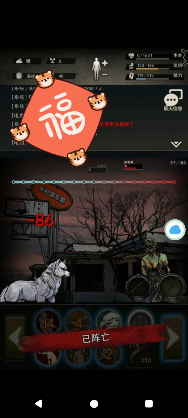 由于浓雾时间的大大增强,在云峰消耗迷雾组织3*100兑换(限购1)品质S 属性(生命6,攻击5,防御6)技能 喷吐辐射:每过30秒,向敌方单位所在的位置喷射辐射液体,位于辐射液体中的地方单位每过3秒回会受到一次螃蟹防御*50%附加2点辐射伤害,辐射毒液持续时间为18秒,范围为3格,最大喷吐距离为5格。二阶→防御*60%+4点辐射伤害四阶→防御*70%+7点辐射伤害