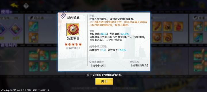 我也不废话,直接说两个方向:一、如何防暴毙带鸾羽蒲团和朱雀罗盘,大家可以看到局内免伤拉到了90%,并且由于鸾羽蒲团回血的影响,我的血量一直会保持在30%~35%,45关以内boss秒不掉我(秒我相当于在没有免伤的情况下打掉我三条命)在火四的二技能叠6层或以上的情况下,没有朱雀罗盘,免伤也能到90%。如果有朱雀罗盘的加持,火四的二技能叠5层免伤就可以达到90%。但是注意一点,如果不是火四,别