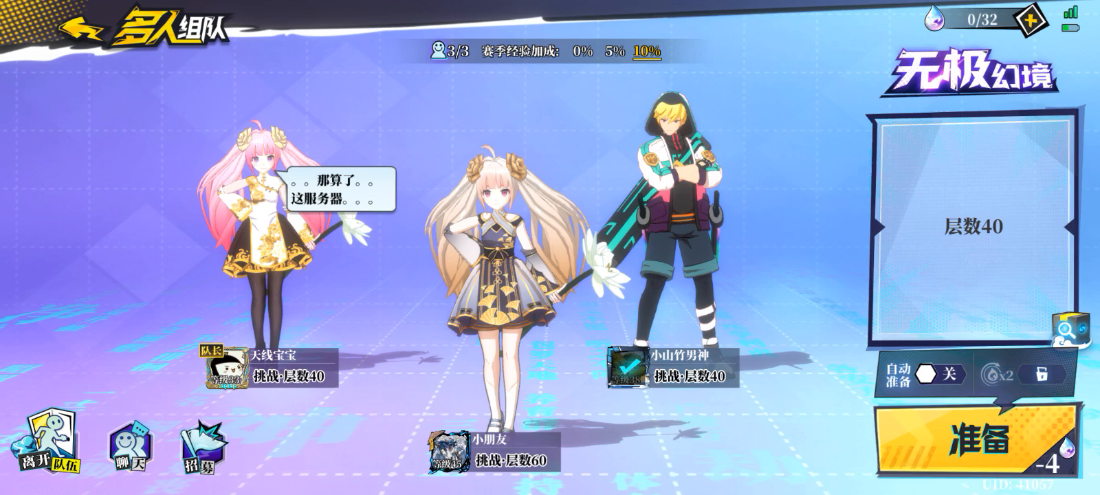 守护模式一把8灵力,输了才返还5灵力,一点试错机会都不给?关键是这种模式不打到后边完全不知道能不能成功,5-2打了两天了,白费两天的灵力。能不能改一下,输了没奖励也不扣灵力,让人能够试试怎么过不行吗?给个sl的机会不好吗?还有哪位大佬知道守护5-2怎么过?