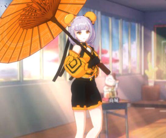 看见柳慕樱的第一眼,我就觉得她像颗橙子。因为对她的基础套装印象实在太过深刻,怎么看都觉得伞妹像橙子,为了扭转我的这个观念,伞妹特地邀请我来参观她的衣橱,那就先从我印象最深刻的这一套开始吧~ 【初出茅庐】u1s1,这谁看了不说一句像橙子呢。整体橙黄色的配色,在配上扎成丸子的头发,简直就是橙子本橙。不过虽然像橙子,柳慕樱也是非常有个性的橙子,橙黄色非常对应她元气满满的性格特点,黄色也和她的土属