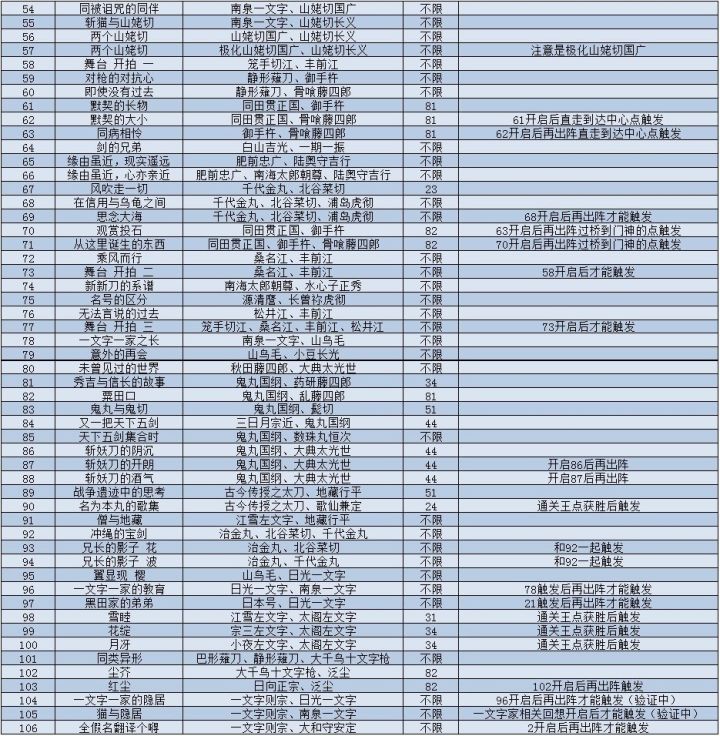 记录一下微博里婶婶的回想触发条件#刀剑乱舞#刀剑乱舞online