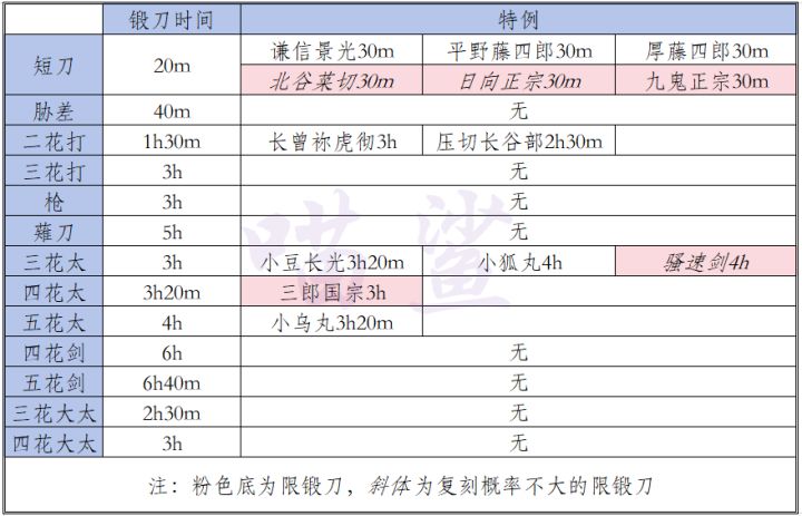 [攻略]全刀剑锻刀时间总结