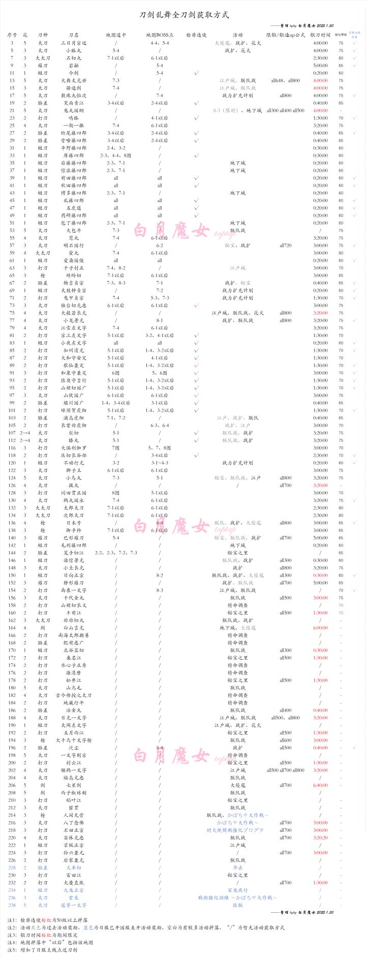 (2025.1.30更新)全刀剑获取方式(捞刀表) 刀帐顺序