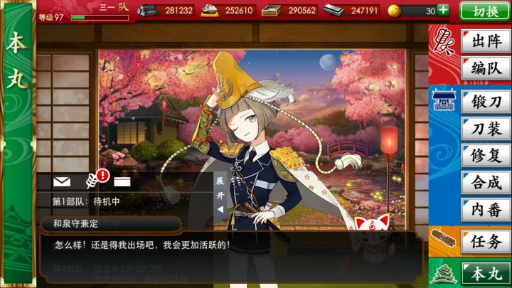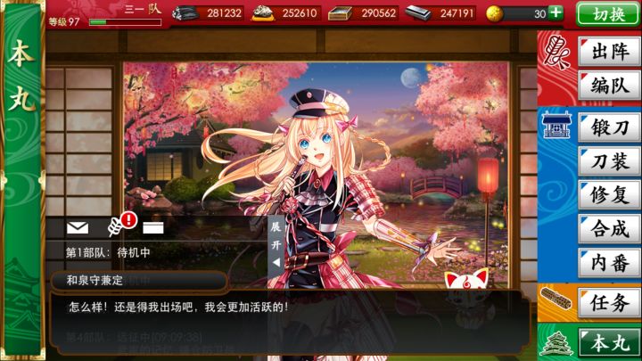 更新了之后,出阵的时候发现有的刀没了声音,回本丸后用换队长的方法测试,发现除了个别刀以外,其他的刀都没有声音。而且把没有声音的刀放到一队队长位,还会出现下图的场景。