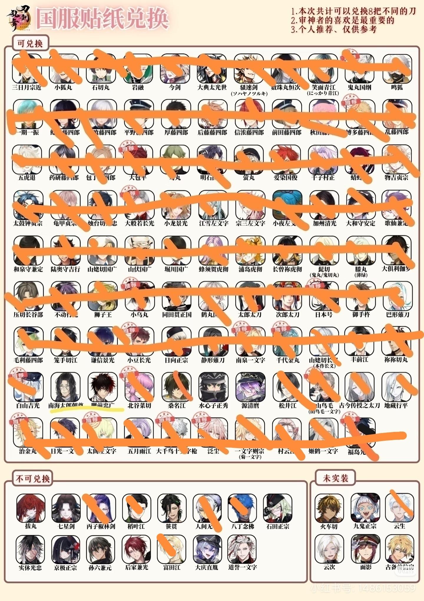 记录一些打活动的碎碎念,间歇性肝活动,日常摸鱼含晒一些第一次捞到的刀子图,周年庆语音,还有一些我自己很喜欢的语音,怕剧透的话慎入只吃全员cb向,还是更喜欢大家一起打打闹闹热热闹闹地像一家人。不搞本丸内部恋爱,拒绝自产自销本质是阴暗自闭社恐审,每天都需要被投喂大量刀剑男士的鼓励,如果没有的话就在本丸角落变蘑菇(什么巨婴)虽然自己就是作为刀剑男士们的主公但还是希望能找到一位让自己效忠一生的主公,