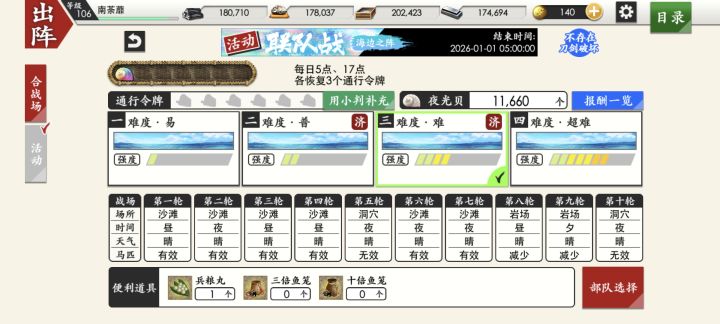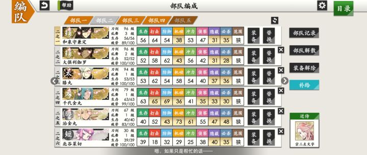 谁能想到昨天晚上我才刚刚拿到治金丸……谁能想到活动刚开始我只能拉齐一只平均三十几级的打太队伍……感觉海联这个活动就是打的越多越好打,随着三兄弟逐渐解锁点数开始由一天几百变成一天一千、一天两千、一天五千、一天五万,配队在最后一张图,打合战场时把菜菜换成山伏国广(锻刀非非的,这已经是我数一数二的刀了ww)这个队伍能打普通e2全s胜,彩虹合战场e4s胜。下面说说我的经历,海联经验给的很多,刀升级还是