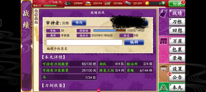目前小判163.4874w,鬼丸刚好乱舞5,白山差1乱舞8,其他藤四郎都乱9