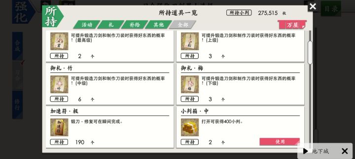 开始前小判:15w+当前小判:194w+鬼丸-19白山-44