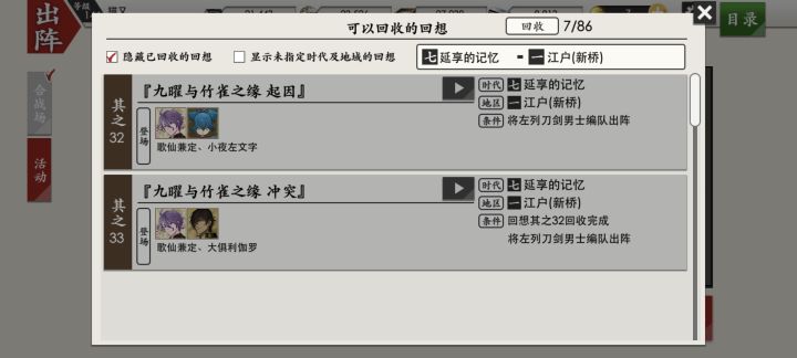 同事们,为什么歌仙兼定触发不了回想?其他的刀剑都可以,但只要有歌仙的就弄不了