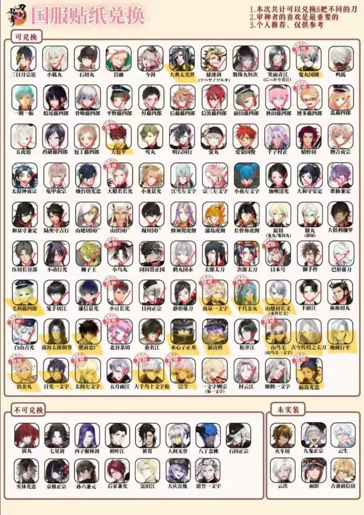 救命!因为缺的刀太多了,所以不得不专门找张图来看一下,我有缺多少刀绿色是已经有的蓝色是主线任务会送,所以不换的橙色是想要换的但是不是很确定是不是最优解,所以想请同事们帮我看一下,不考虑厨力,单看实用性和稀有性(一年之内获得不了或难获得的刀)的话,推荐哪几把刀?请同事们不要不理我呀😢,我一个人在这自言自语挺尴尬的