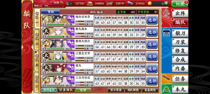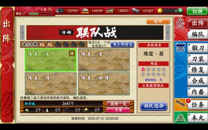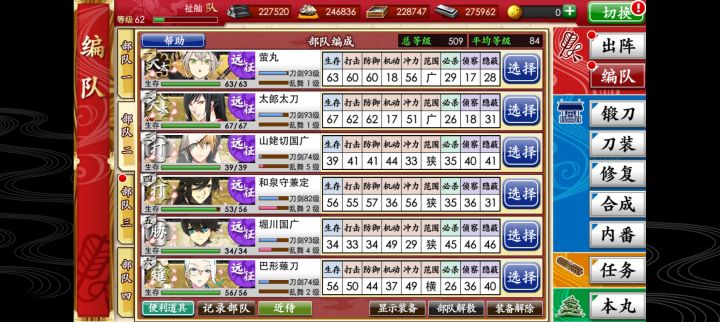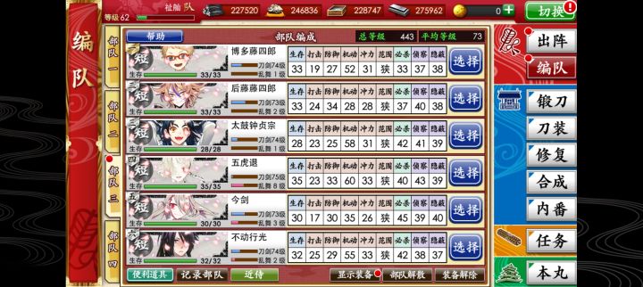 在推主线,从6图开始,合成喂不满打击和防御,只能满机动和冲力,总是出短刀,其他类型半天出一个,等级的话我还有5万小判,可以去联队战练,可以速通主线吗,前提不进沟,