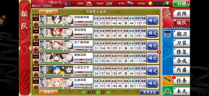 (以前都是用高等级极短横推一切,根本没注意)现在同样是打坚牢之乱,不用三倍,除了第一战和最后一战都是特,远战打得掉刀装就是一刀切;用了三倍,下面几个打裸装大太都只破皮,有刀装的大太更是刀装-1-1,只有药研打的动……