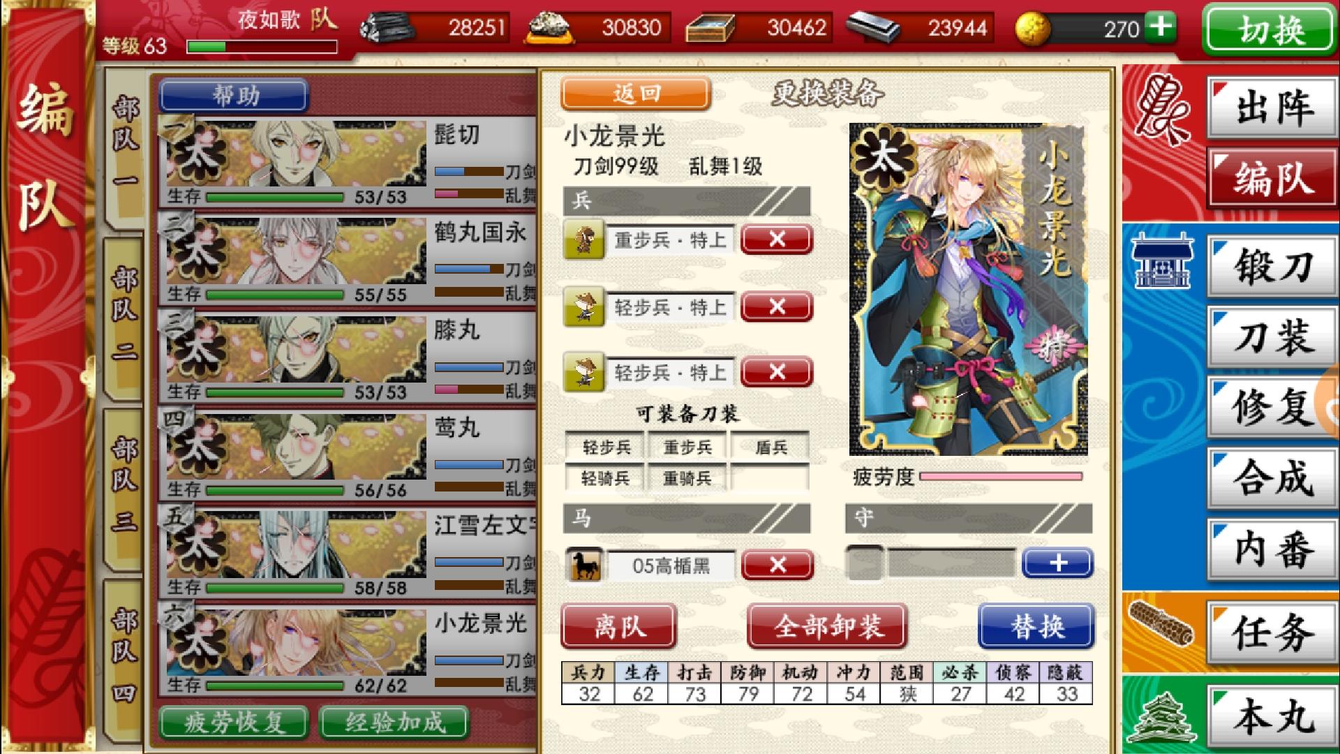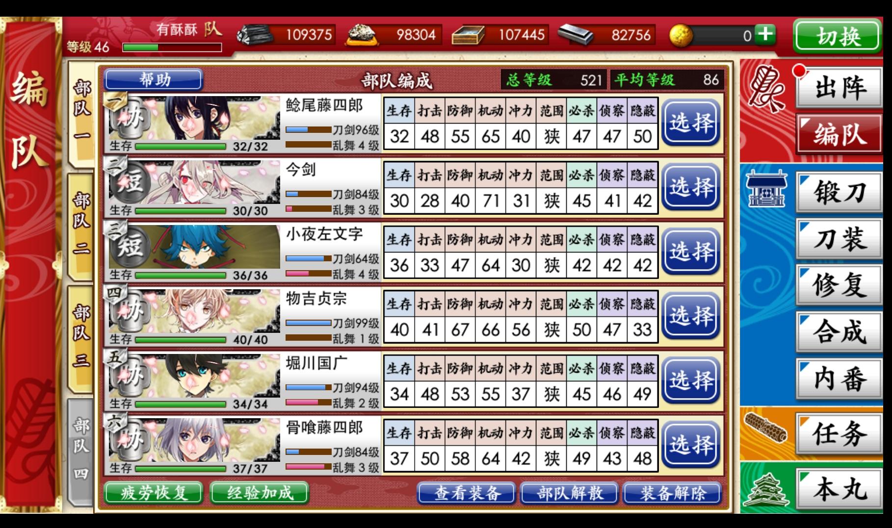 99层要怎样才能差不多无伤常驻(馋小判),现在是只有一队极短(50多级,博多送去极化还没回来,回来之后一定会练上去),一振极胁(小幸运),然后四振极太(40左右)。期末快结束了,时间很多。( ˙灬˙ ) 。