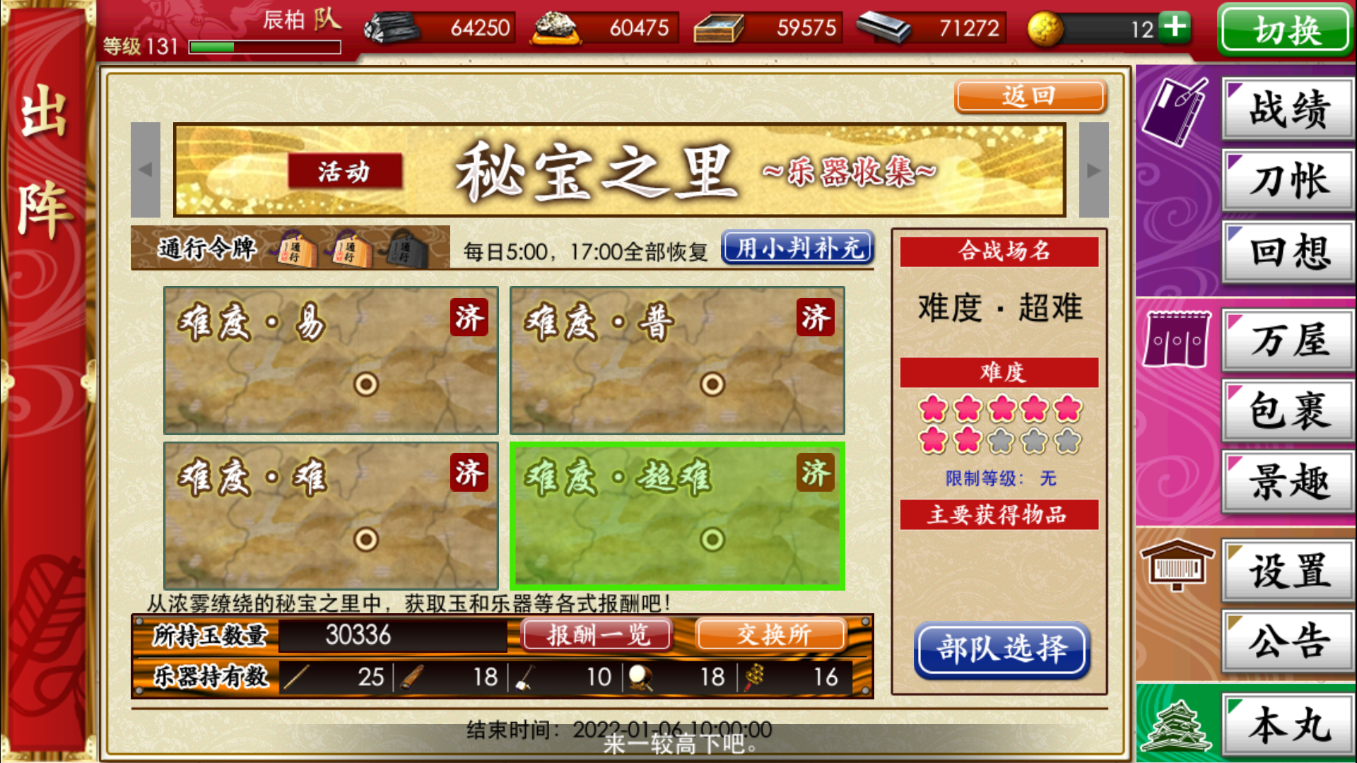 问问这次的秘宝之里大概要什么样的练度才能过4个图,想在活动里练一下65+的普短,住宿生每次活动只有两天时间肝图,想提高效率多拿点乐器。