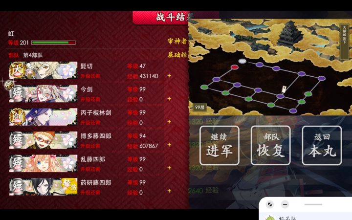 是这样的我一边在玩,一边在看小说,然后突然感觉有点不太对劲,看了一眼发现——呐,轻伤QAQ还有就是、还有就是我没有练短刀队,怎么过6-1?
