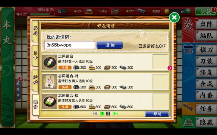 我正在游族平台玩刀剑乱舞-ONLINE-,邀请码是3n5i5bwope,加入我们讨伐溯行军,刀剑男士,即刻出阵!http://touken.youzu.com/所以这些个任务的好友是怎么加的
