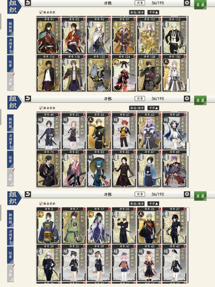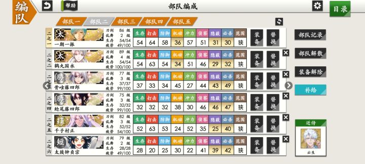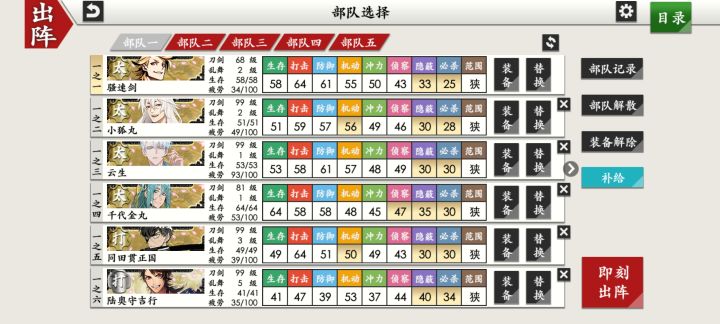 昨天买的小自抽号,抽了一百发才两个彩,但是看攻略貌似有些刀还不错,不过我分不出来哪些更好那些是有注意事项的,不想走弯路所以来问了……!攻略说组一队太刀和一队短刀好,一队太刀换了两个有点犹豫要不要重新组,短刀应该都差不多吧……?