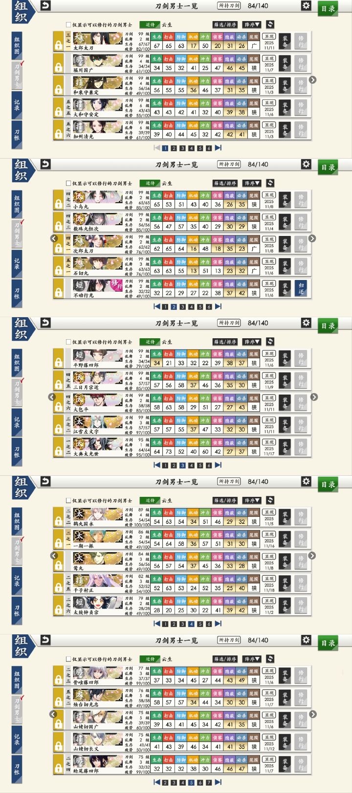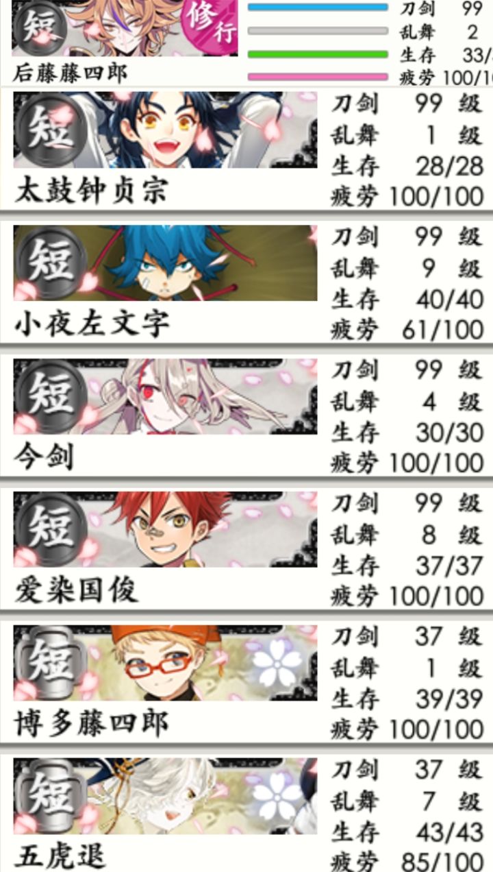 等级如图。因为想把图都开了,所以在南瓜活动里练了一些短刀和太刀,后面看到薙刀和白山好像也需要练起来所以就和大太慢慢搞了。事业心比较重,所以更倾向练级、推图。所以想问一些目前练级上的问题。社畜一枚,所以只需要点点点的话,会更好一些。还有目前的小判是17w,每天会努力远征。以上,包括三个图,是我的一些基本信息,和限制条件。问题有点多,提前感谢阅读(≧∇≦)/问题是1、七图还没开始推,感觉