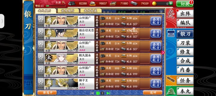 如题,图为该锻刀公式在短短三天的成果,鹤丸,次郎太刀,石切丸,萤丸都锻出来了!近侍是爱染哦,祝欧气满满!
