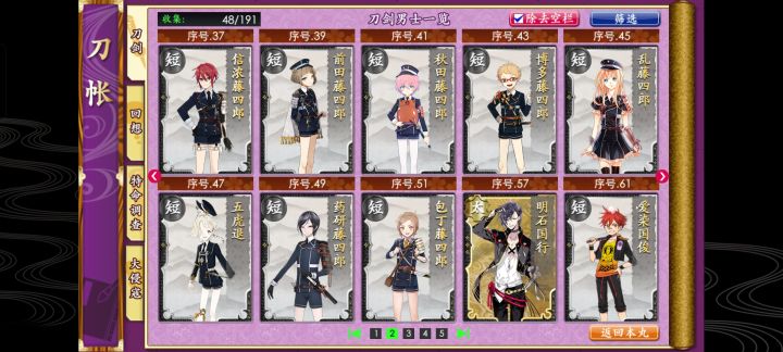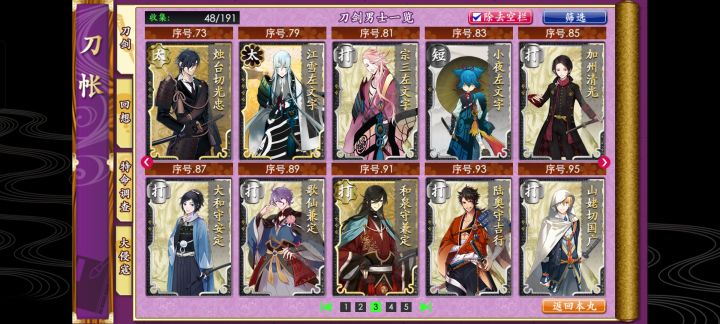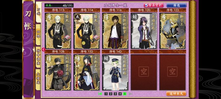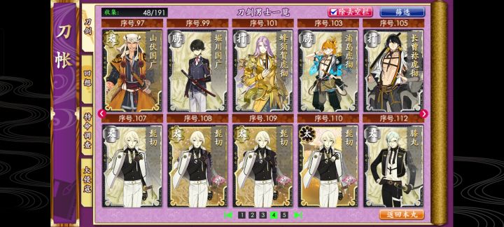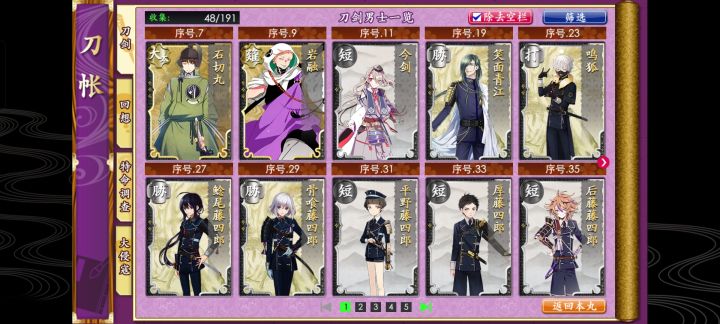截至目前(不到10次应该,因为没开检非违使),已经捞了4把江雪、1把萤丸(初)、2把鹤丸、1把一期(初)、3把岩融、2把莺丸、4把石切丸……谁懂啊,锻都锻不出来的……