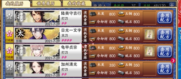 好耶!今天限锻日课第二发就出了!泛尘之后资源直逼1w,日光一文字结束战斗之后居然已经回到4w啦!开心!祝各位婶婶也早日锻到自己想要的刀男!
