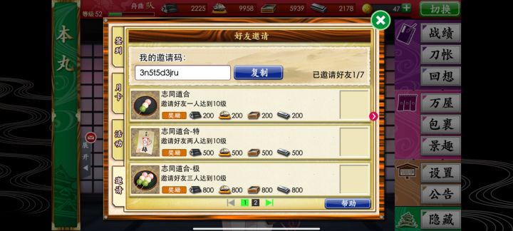 新人婶婶,有没有好心人?能帮我填一下邀请码,想要奖励,早玩了7天,然后错过了免费赠送三日月救救孩子吧#游戏日常 #刀剑乱舞online