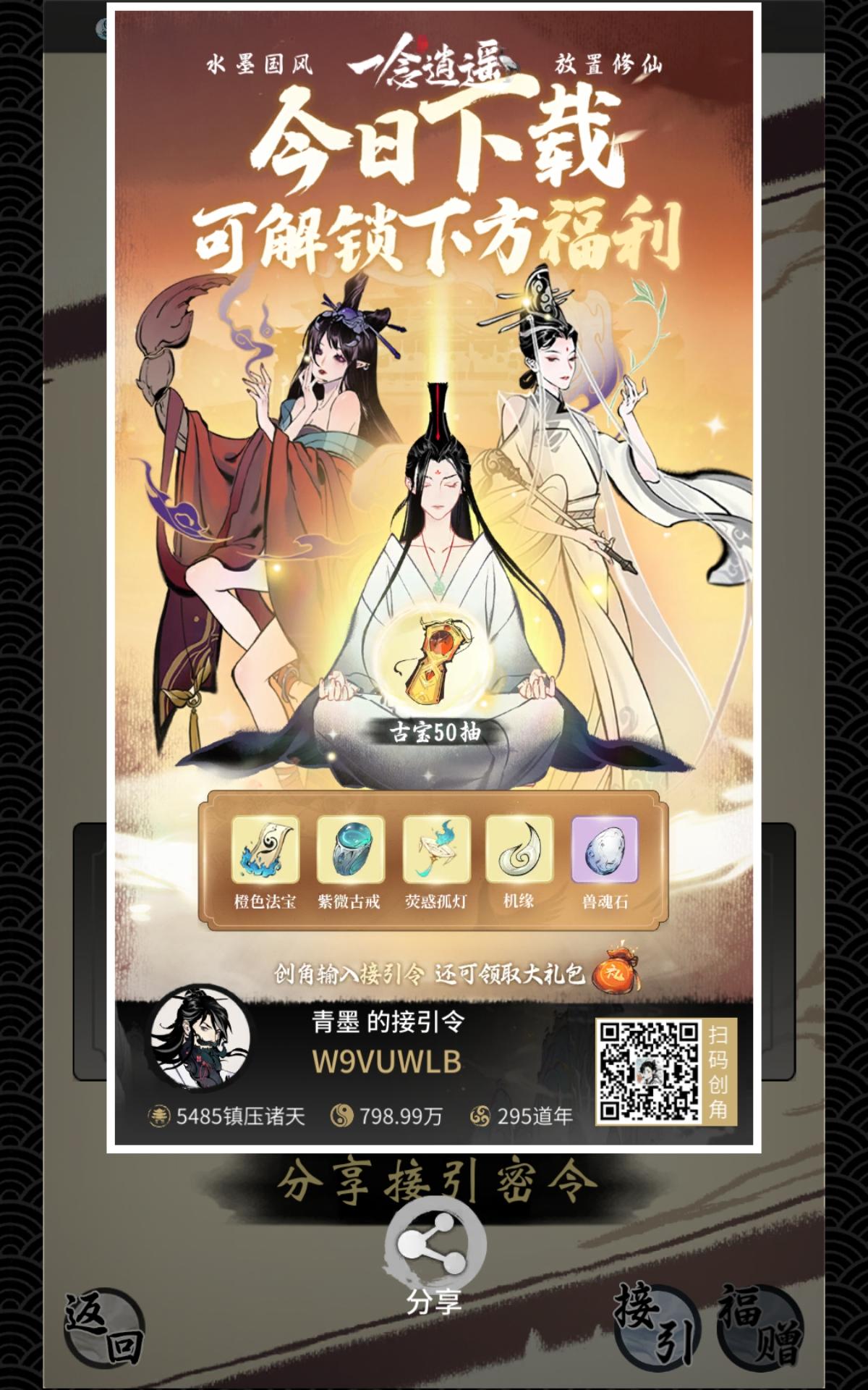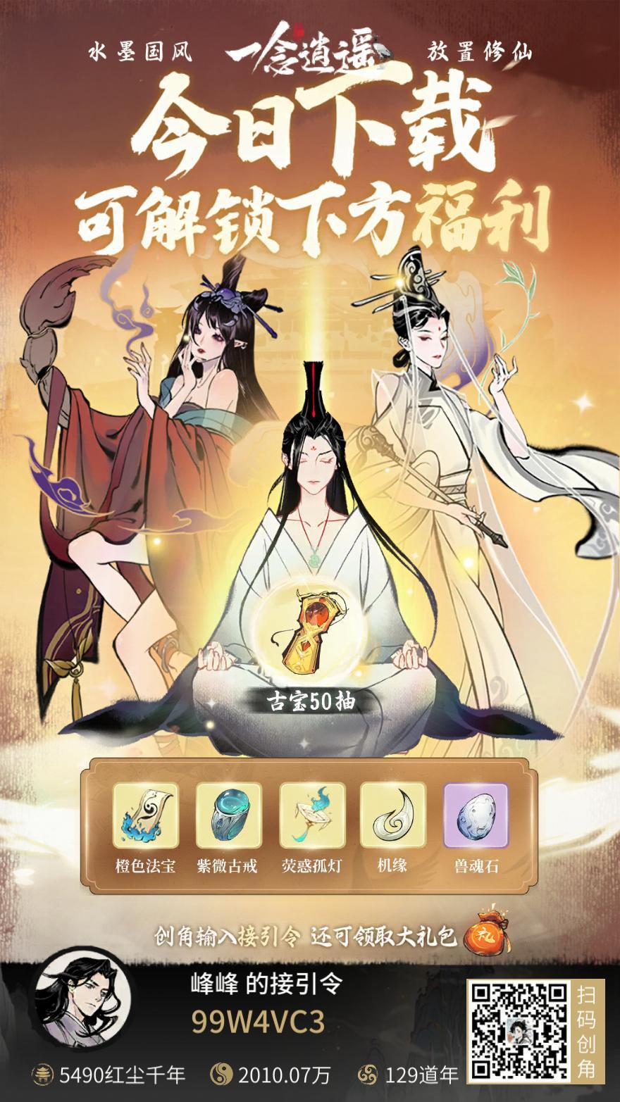有这些福利到新区0氪也可以名列前茅,接引令的奖励也很重要,别忘记填了哟接 引 令 :D9VWYT5V,领古宝五十抽天机密令:秘境机缘万千任然唱逍遥这把必出666极品仙灵666xy666关注一念逍遥官方微信灵丹妙药欧气加成666和任然一念逍遥ynxian666千里共婵娟ccs888zy888遮天888九龙入幽居红枫映孤客脚踏祥云遨天际4323五光十色招人金刚