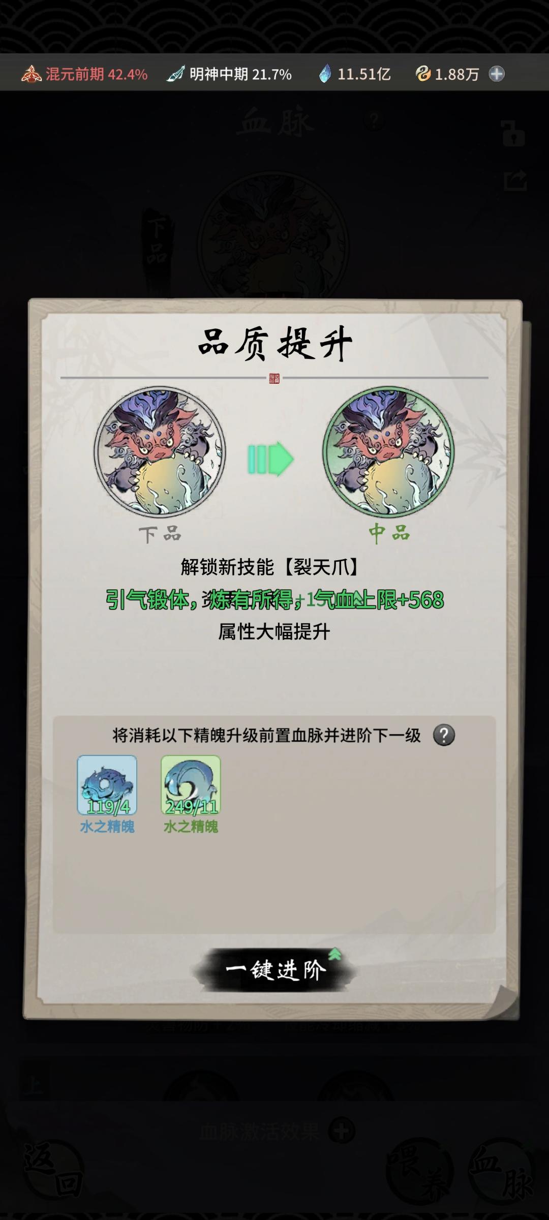 不是说更新后会换成通用精魄提升血脉吗?为什么这里还是显示水之精魄