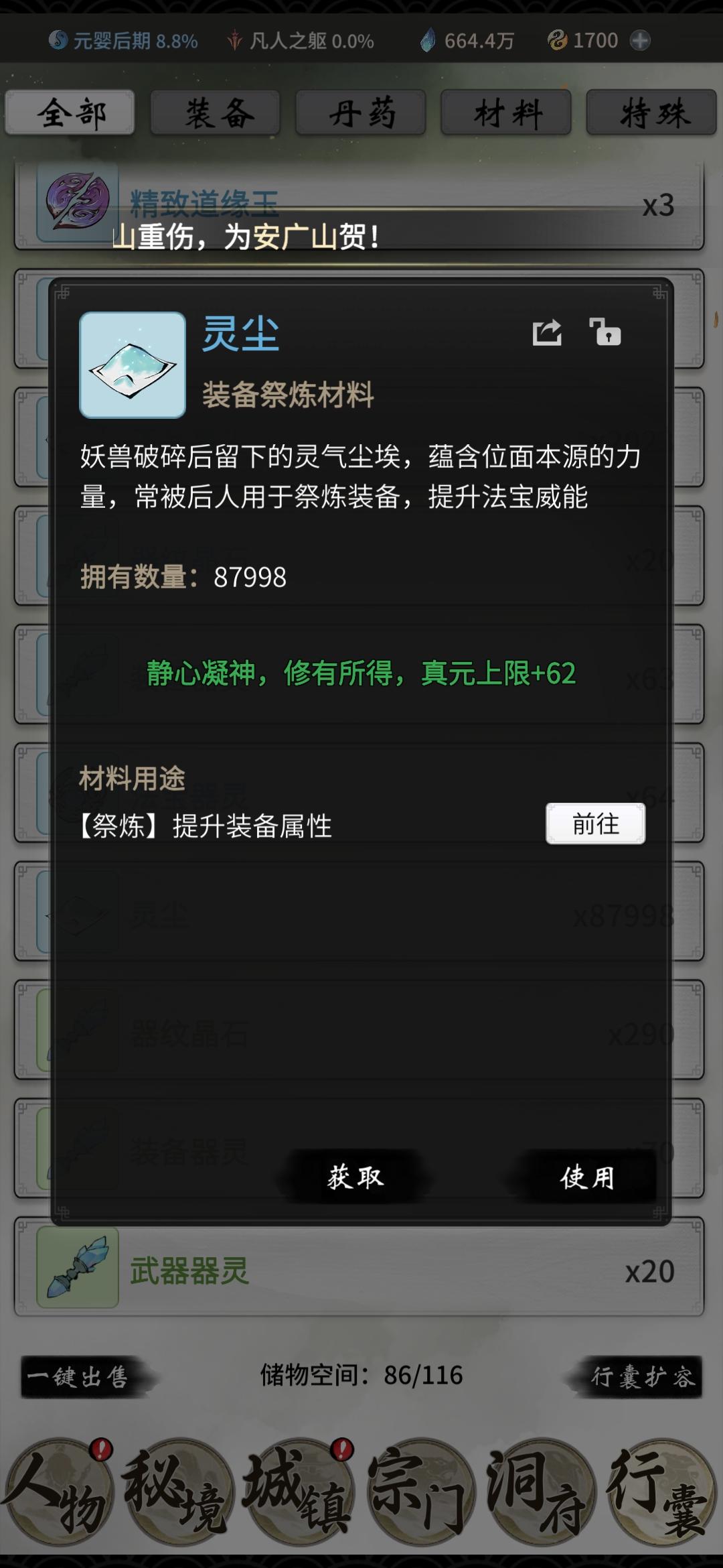 这边建议新手无论是法修体修古宝类的话前期要抽出九品莲台的号,九品莲台在化神期前的血量增益特别明显,在两个位面的跨界论道,论剑台,打架之类的可以领先大部分人,然后太白九剑这个套装 ,建议化神期前凑出两件,如果两件都没有的话换个号,这个金色套装可以说是灵界之前最好获得的了(注:什么攻略 其实都没有太大的用处,最多给个方向标,建议一个号玩到返虚,多与其他道友交流交流,再重新开个新号玩,千万不要不舍得)。