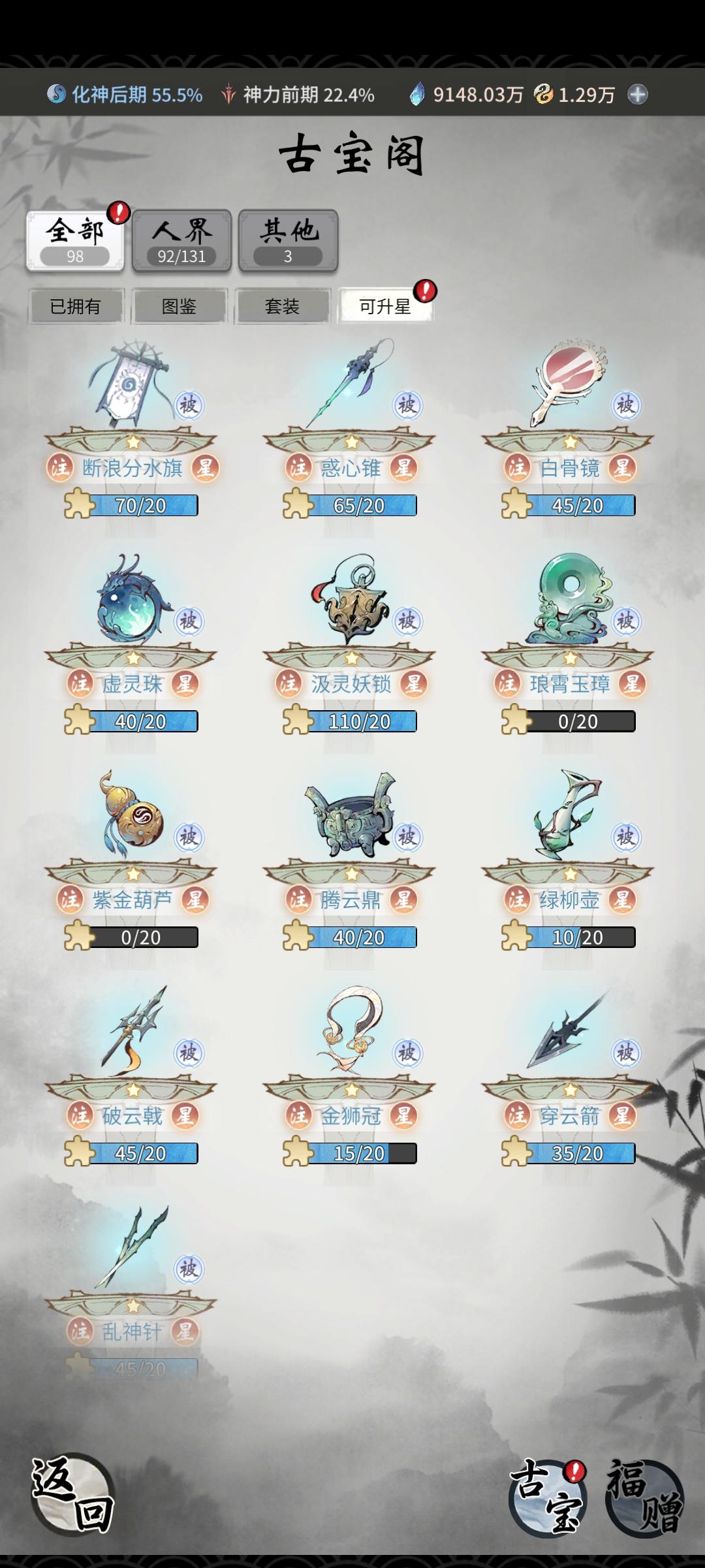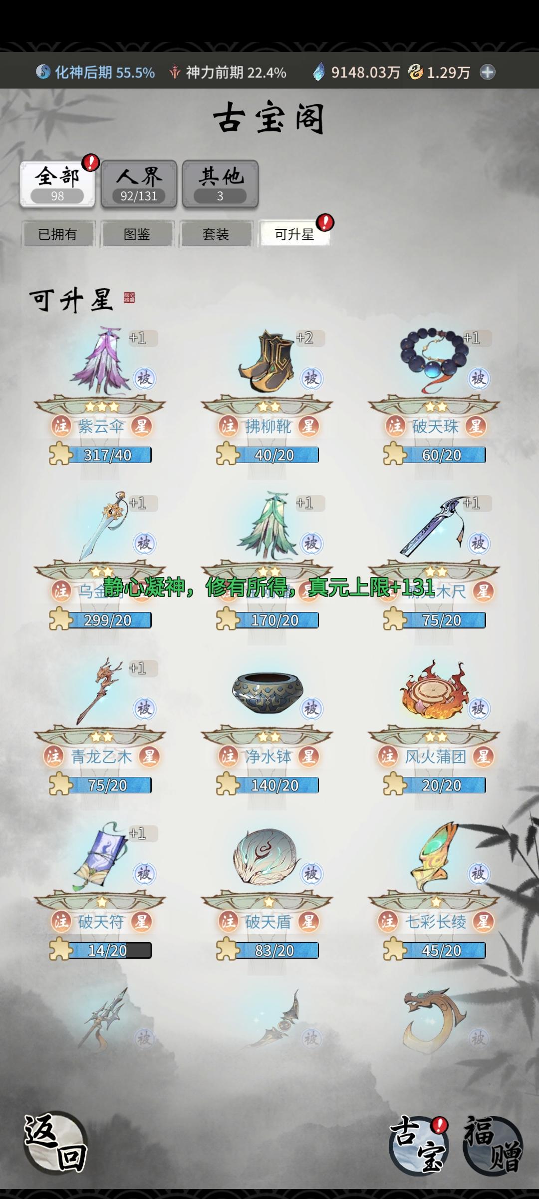 上去的宝藏格和天机阁里面记得买天地真言和道法果,还有残卷,其他的除了三折以下的都不要买(机缘足够,不然优先上面三种)