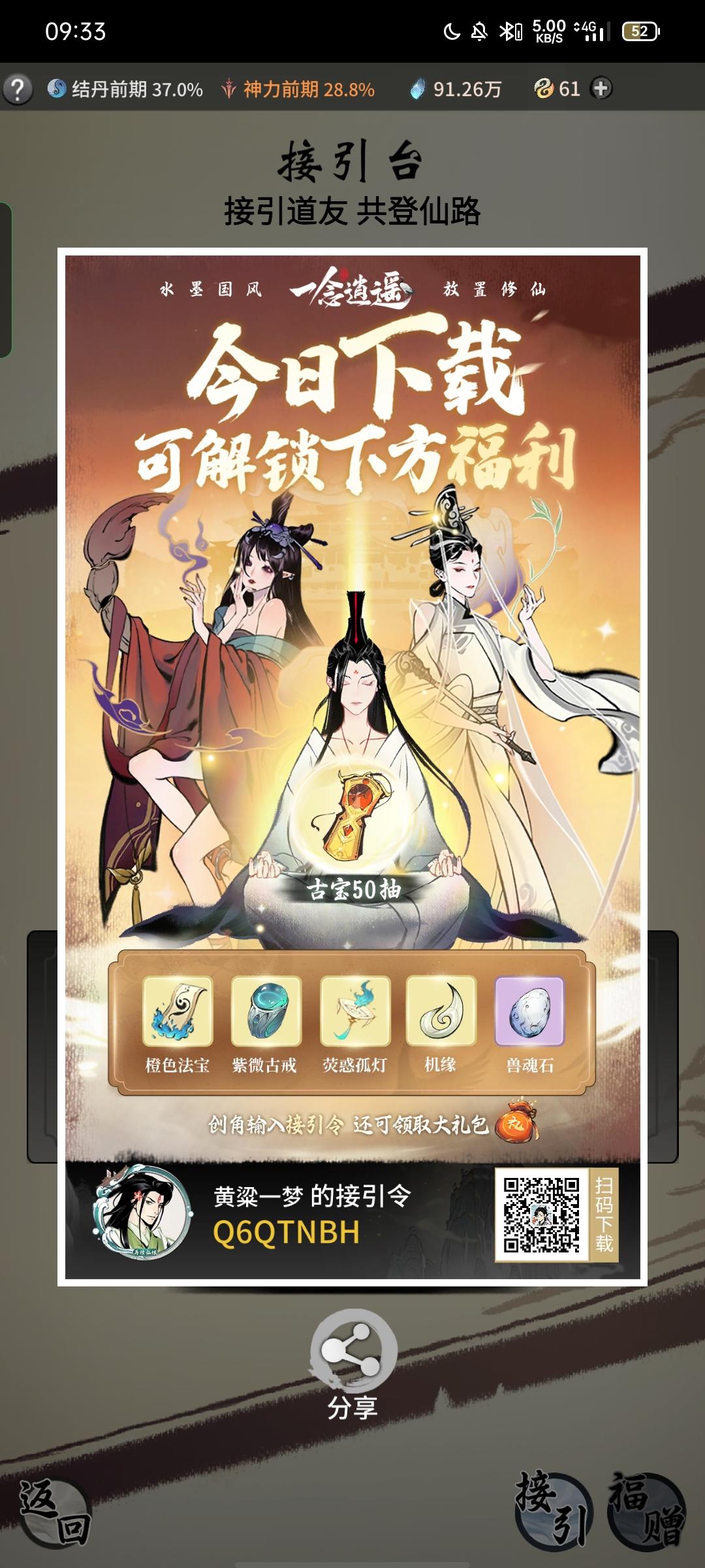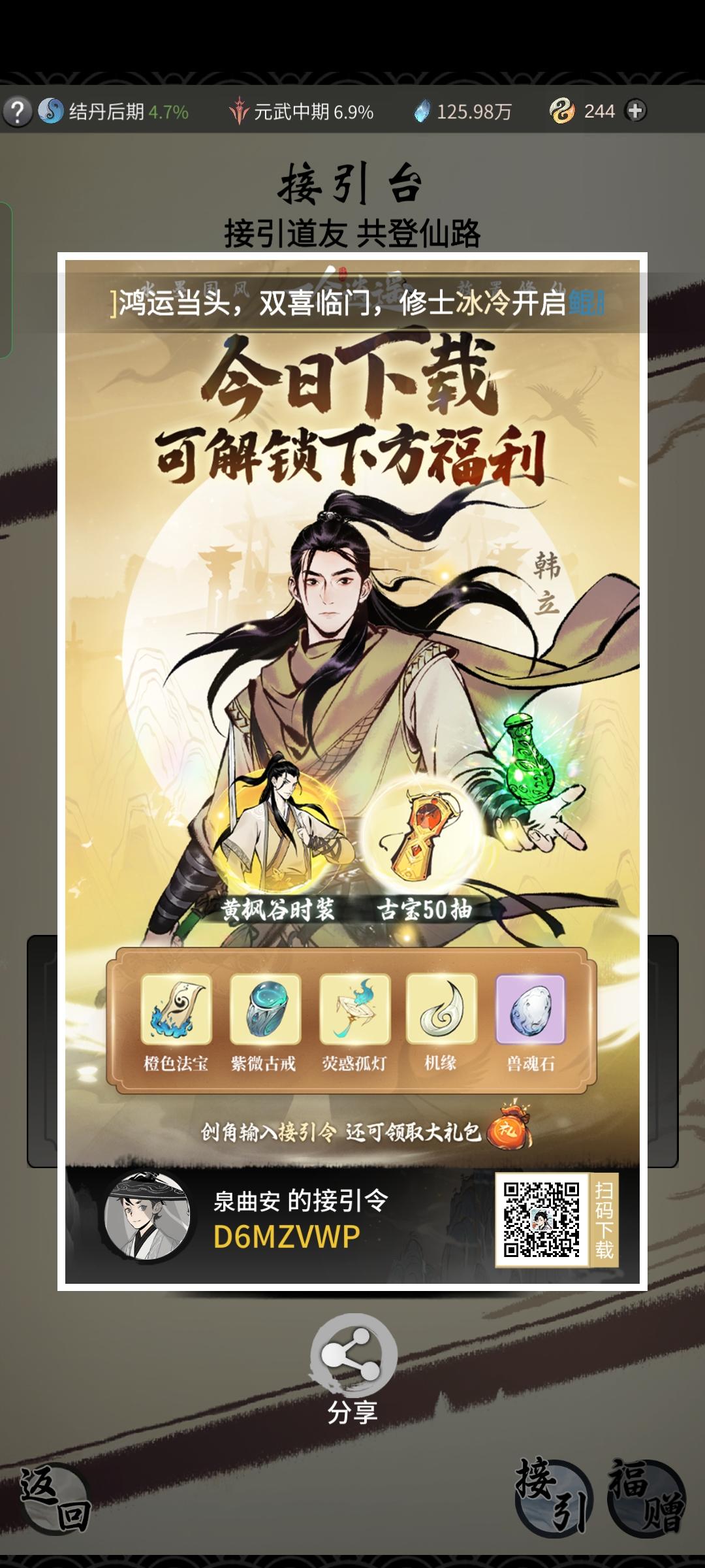 最新接引密令P6JFNAC输入领取大礼包记得关注微信公众号 一念逍遥哦