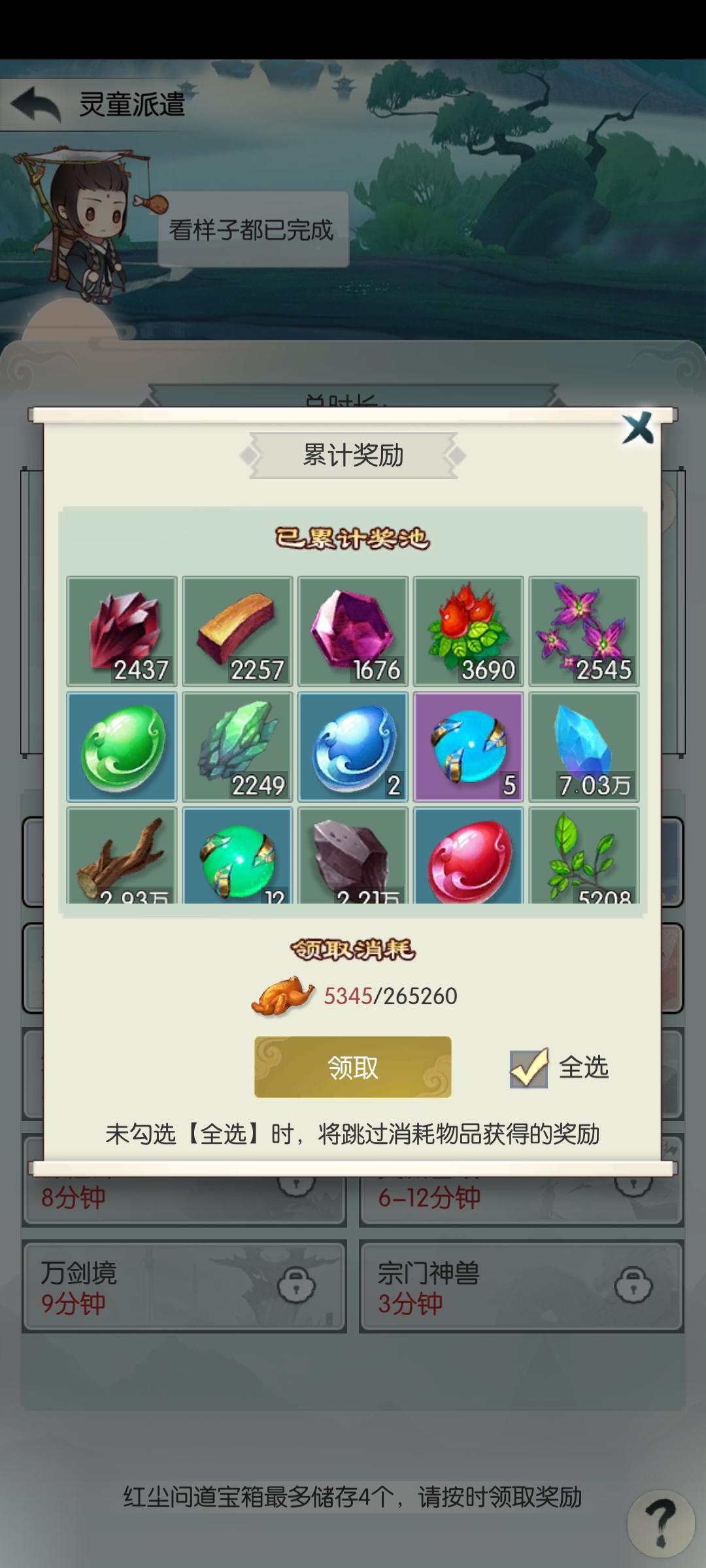 这个灵童派遣只能一次全领呀,如果刚开始忘记领了,超过食物等级就领不了了