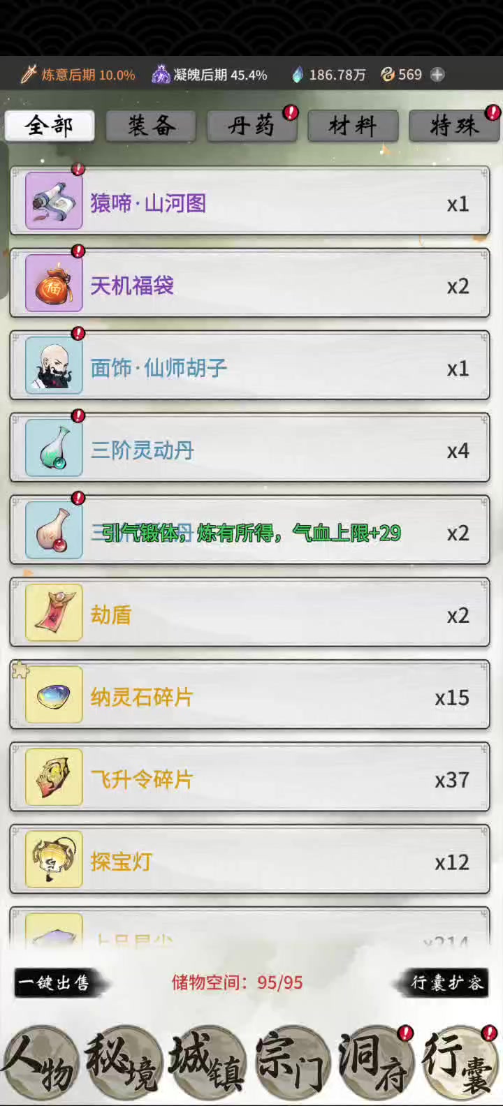 不是背包道具什么时候能用啊,明天飞升现在万妖果不让我吃我服了