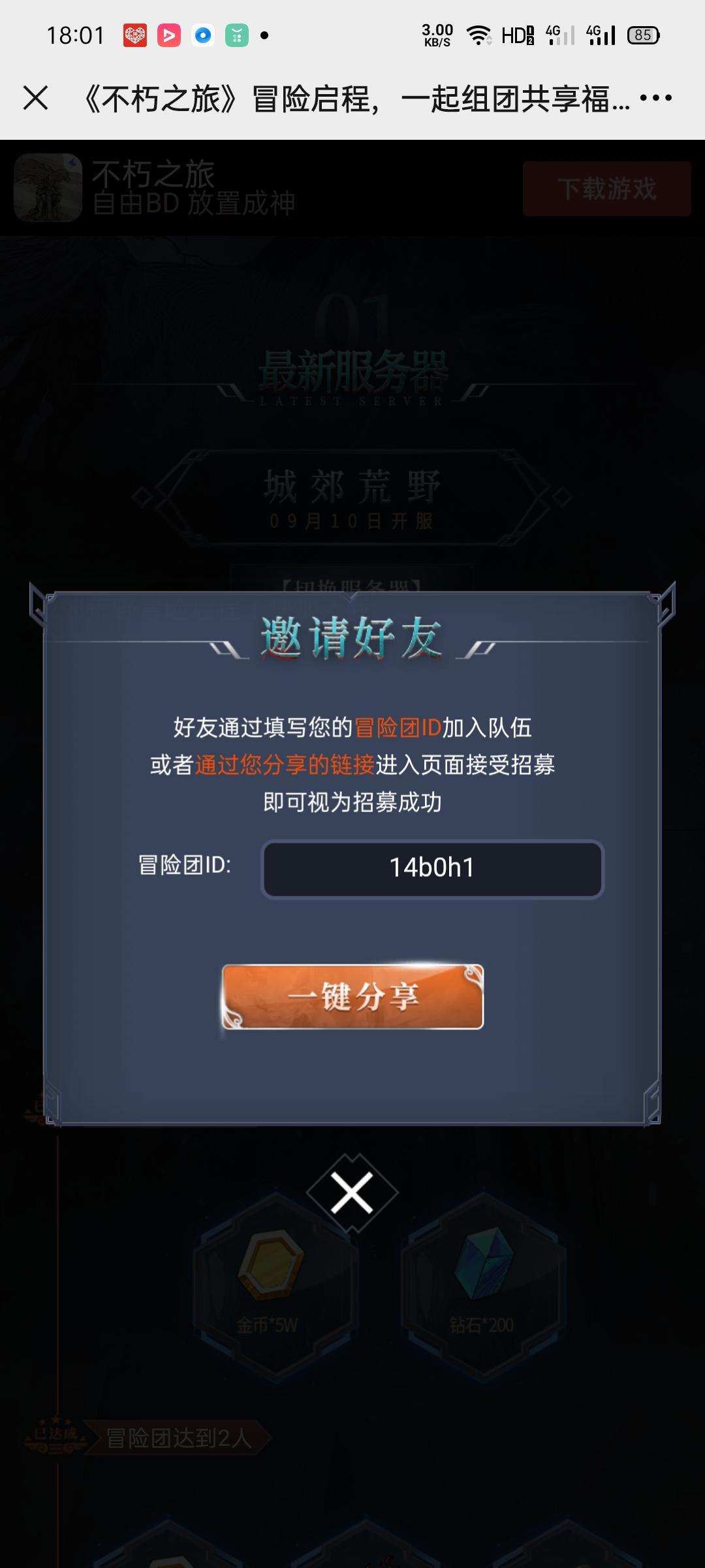 2区组团领福利!!来人互点喽城郊荒野冒险启程!快加入我们冒险团,一起共享成团福利吧: https://activity.leiting.com/bxzl/202010/invite/?id=14b0h1