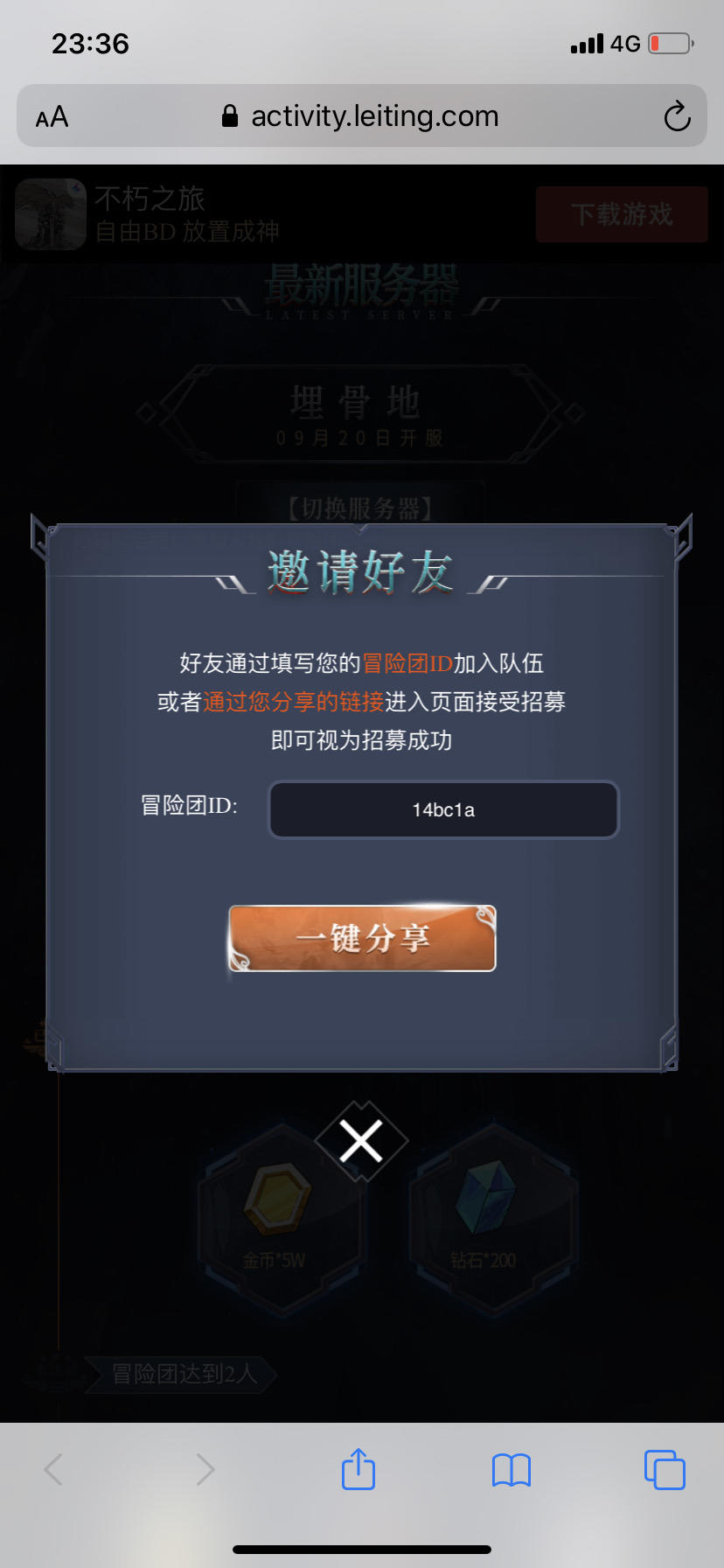 冒险启程!快加入我们冒险团,一起共享成团福利吧: https://activity.leiting.com/bxzl/202010/invite/?id=14b16h