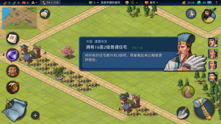 任务要求完成5个科研,加上人口不足移动建筑消耗金币,升级住房消耗金币,金币不足!而且,不明原因的,升级后的住房无法产生税收。