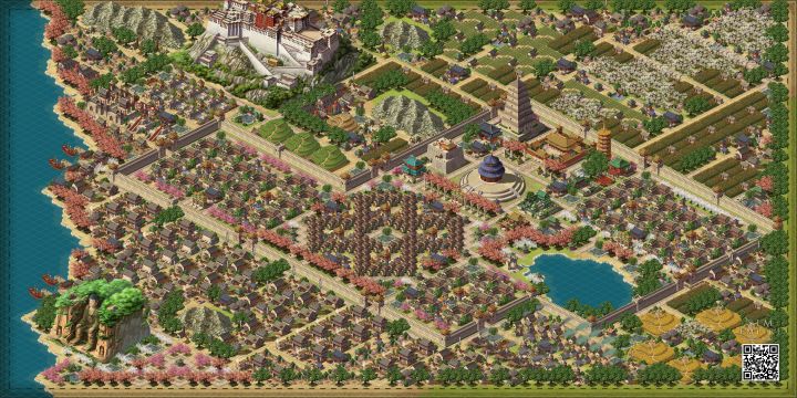 模拟帝国 华夏 五木 无木 布局图 效果图开的是自由模式 没有前期布局 望见谅游戏截图每日更新1:布局图本图主打对称,华夏三防全覆盖。高粱地,茶树小屋,养蚕小屋,看自己的适宜作物自行调整。2:效果图