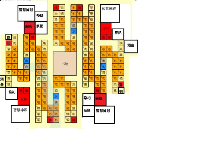 根据中国税收图改编 捕快房和值班房对应哨塔和维修站,书院对应球场,商店中国和阿兹特克的对应,瓷器对应陶器,铜器对应可可货摊,酒铺对应布匹货摊