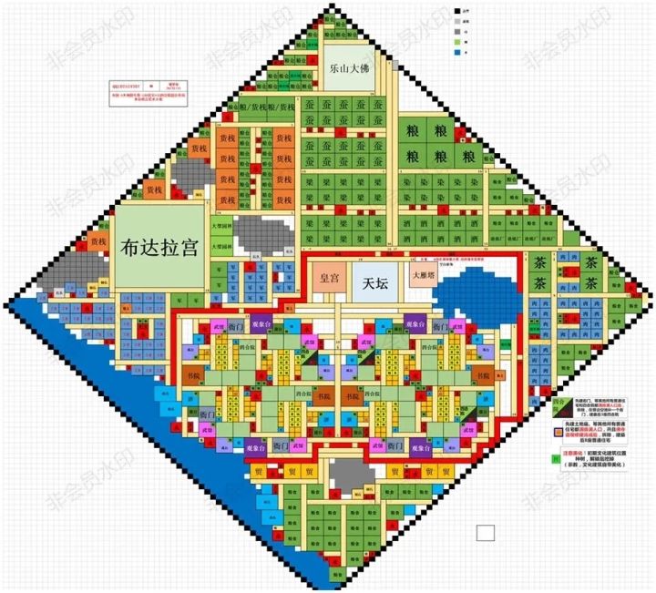 阿兹特克四木布局图住宅区是自创的、接近对称分布的一体布局,并且大概放在地图中心,以满足强迫心理。昂贵且占用较多人口的植物园/天文台/专业学校都只需要一个,比较节约升级所需建筑的资源和人口。在其他地方尽量多安排了一些建筑的位置,可根据大小自由安排建造。为了充分利用空间,有少量的建筑未联通主路。这张布局图没有用巫医帐篷,如果用的话还可以再在空的地方增加一些建筑。希望能够多一种不一样的布局,有任何建