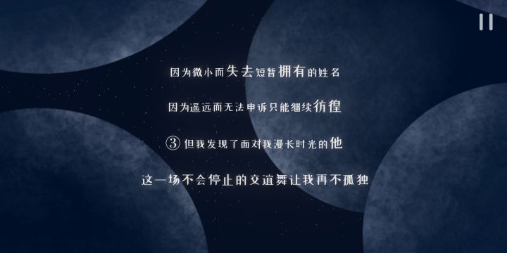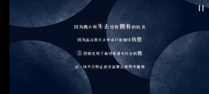 两小时通关,讲述了一个非常棒的SF式的故事,饱含了对于星空、宇宙和爱一些浪漫事物的构筑和思索。游戏本身的玩法虽说有点单调但关卡设计和通关后出现的诗作很不错,美术绝赞(快给主美加鸡腿!) 但给四星主要就是流程有点短而且收集星星碎片时闪烁的效果虽然很好看但是会挡住飞船的身影,总感觉有花瓶的意味在,希望可以改进一下不然真的中后期会有劝退效果(对手残党和近视不太友好)...